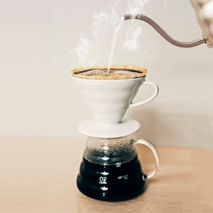 استمتع بتحضير كوب قهوة ساخن ولذيذ مع قمع الترشيح V60 السيراميك من هاريو – الحجم الكبير 02!